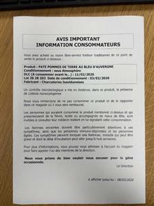 Motif : Suspicion d'erreur d'emballage (étuis brebis utilisés pour conditionner des pots de riz au lait de vache) La mention "VACHE" est cependant bien précisée sur l'opercule des pots et correspond bien à leur contenu.