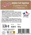 JAMBON CUIT SUPERIEUR AVEC COUENNE AOSTINOS VPF 2 TRANCHES 130G