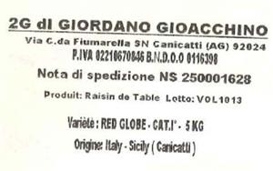 Motif : Présence de résidus de pesticide (chlorphyrifos) au-delà de la limite autorisée.