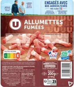 Lardons nature U - Lardons U Bio et Allumettes fumées U