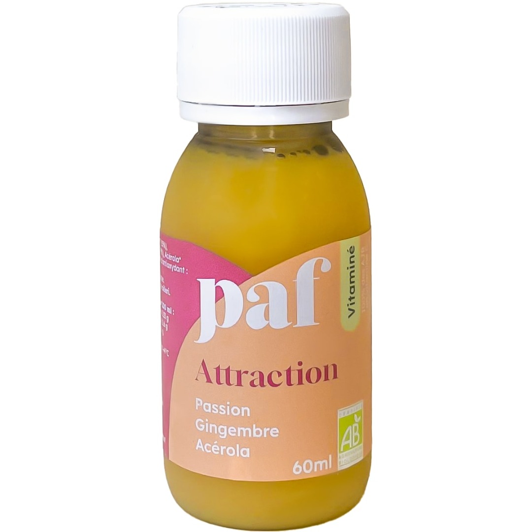 - Shot de gingembre : Attraction 60 ml BIO - Passion, gingembre, Acérola