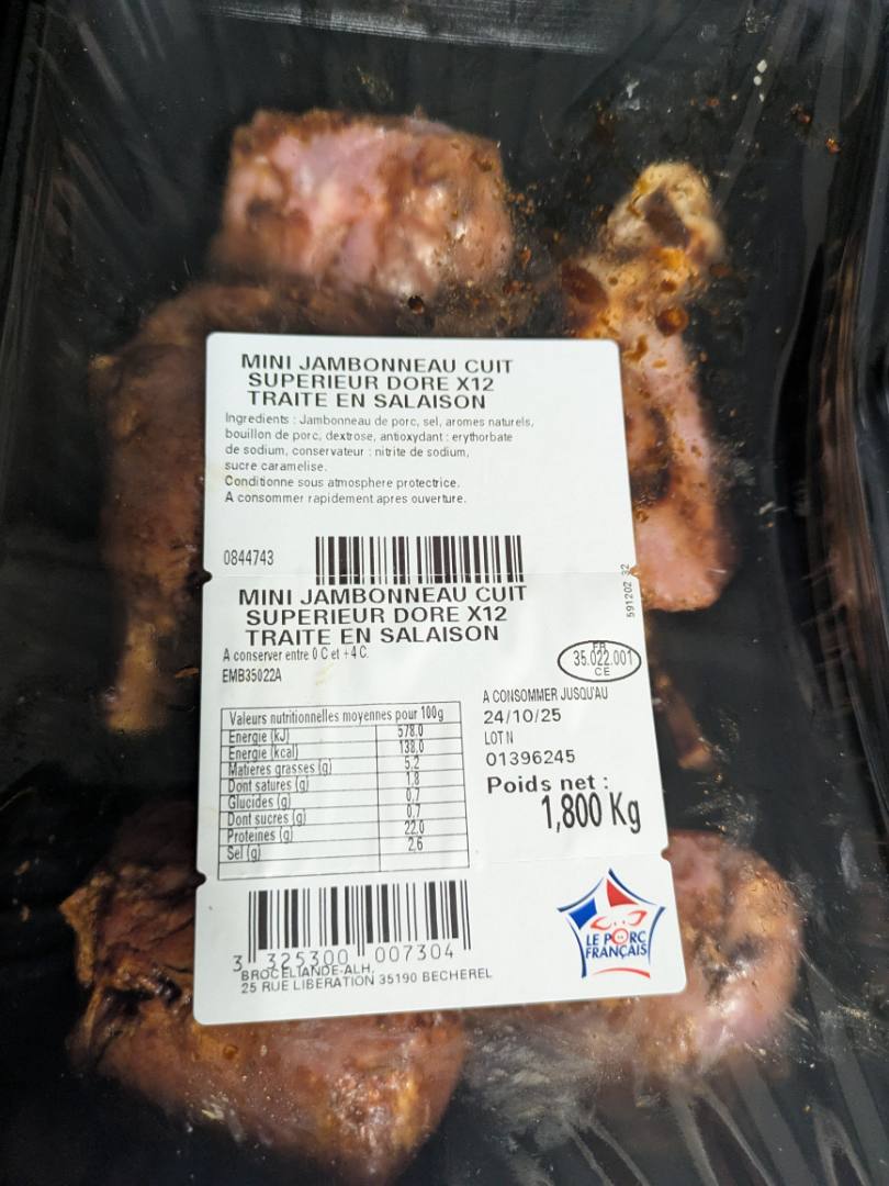 - Mini jambonneaux cuits supérieurs dorés traités en salaison EAN 3325300007304
