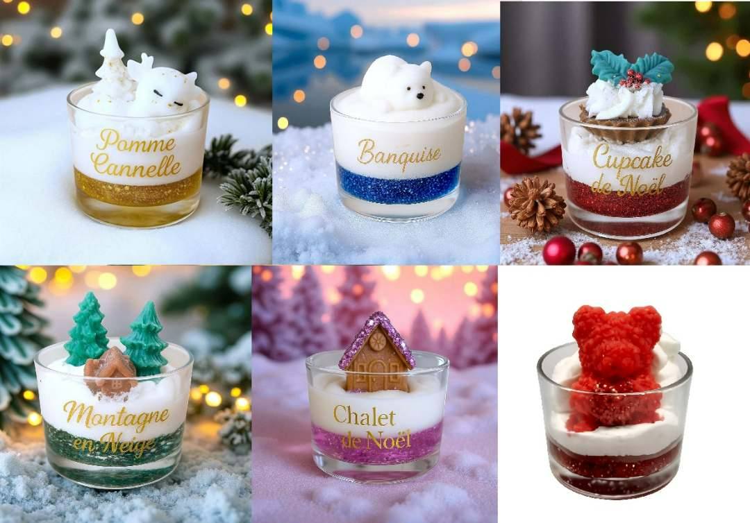 - Bougies reconnaissables à leur fond translucide contenant des paillettes