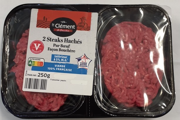 Visuel N°1 du produit rappelé : 2 STEAKS HACHES PUR BOEUF 5% 250G