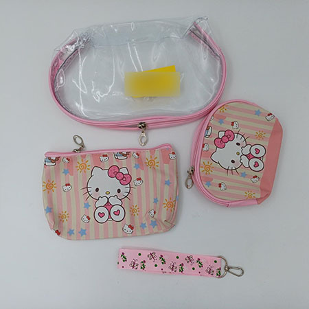 - 3pcs/Set Cartoon Handbag Makeup Bag Ensemble de trois sacs de maquillage roses avec des illustrations Hello Kitty. Produit vendu en ligne, notamment via SHEIN (Identifiant unique: sk25021360080127017)