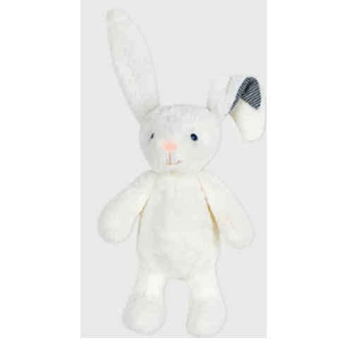 - Jouet doux en forme de lapin blanc avec des rayures blanches et bleues à l'intérieur de ses oreilles. Tous les lots sont concernés. Produit vendu en ligne, notamment via www.petit-bateau.fr et Amazon.