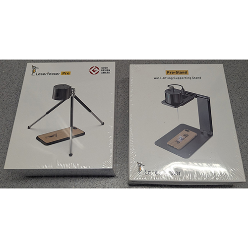 - Machine de gravure laser montée sur pied. Environ 15 cm de hauteur. Produit vendu en ligne, notamment via eBay (identifiant unique du produit: 388395108449).